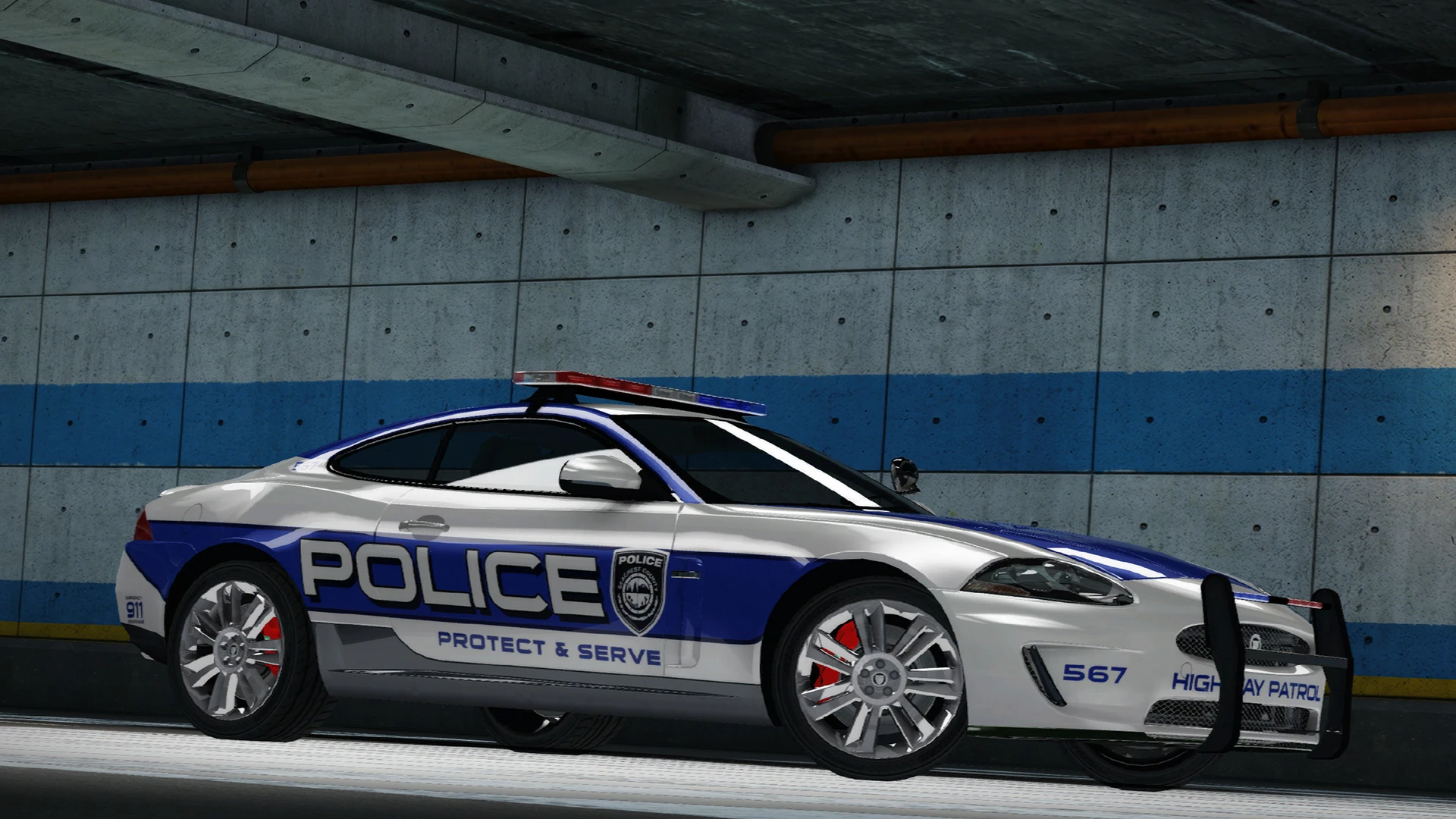 The XKR Interceptor is an SCPD Highway Patrol unit unlocked upon earning 570,000 cop bounty.