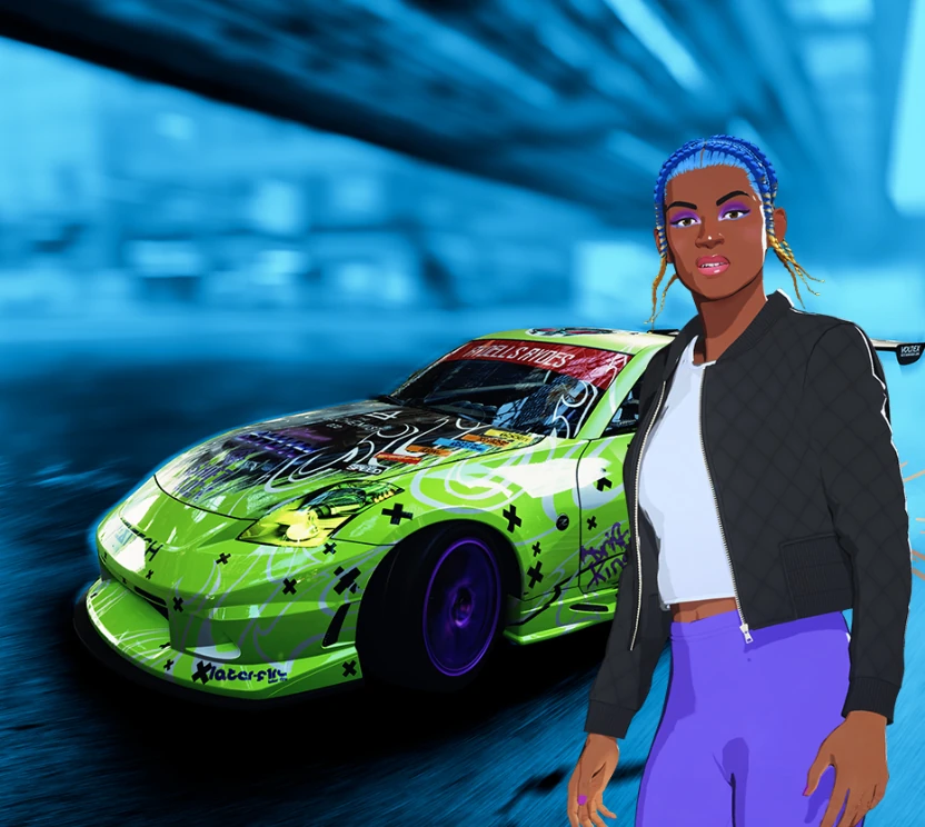 Justicia "PunkFunkDiva" is an Instagram influencer and street racer participating in Lakeshore's illicit underground racing scene.
