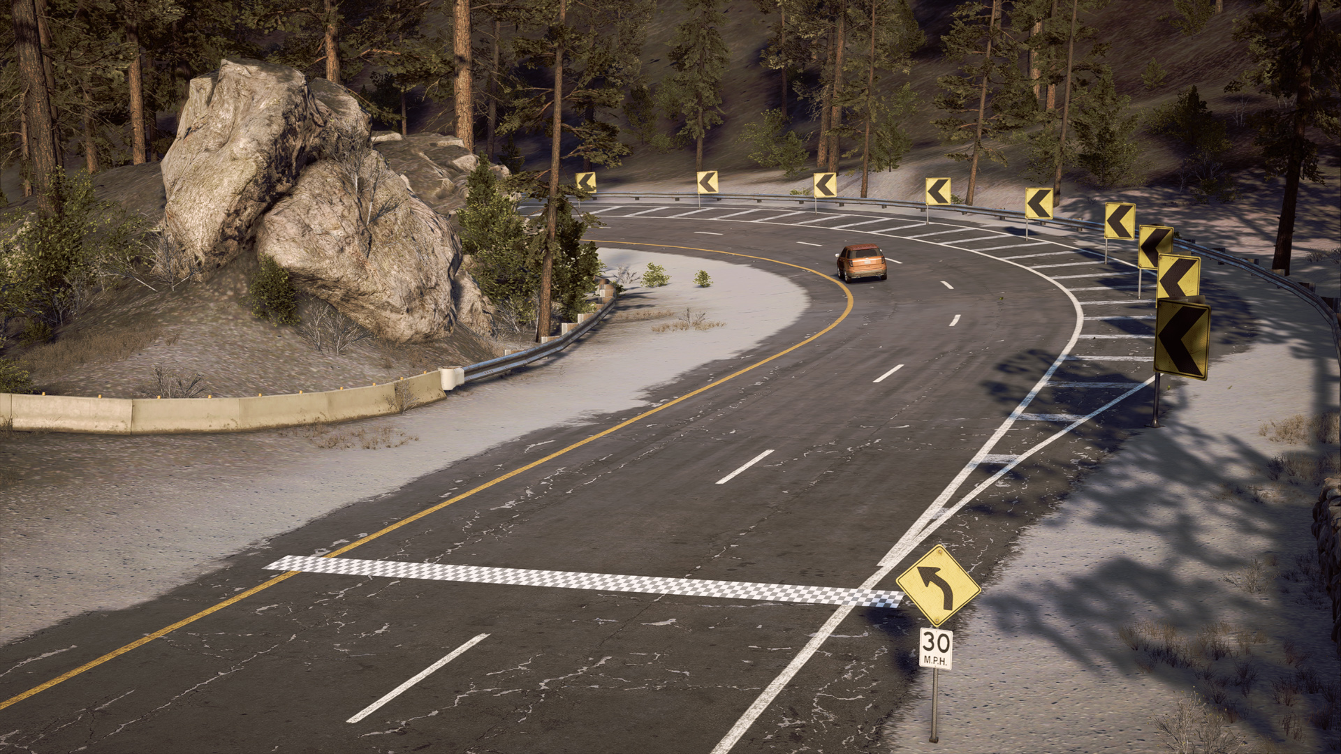 Driving through a speed run will highlight the player's current rate of speed past the start point and will monitor their average speed along the route towards the finish point.