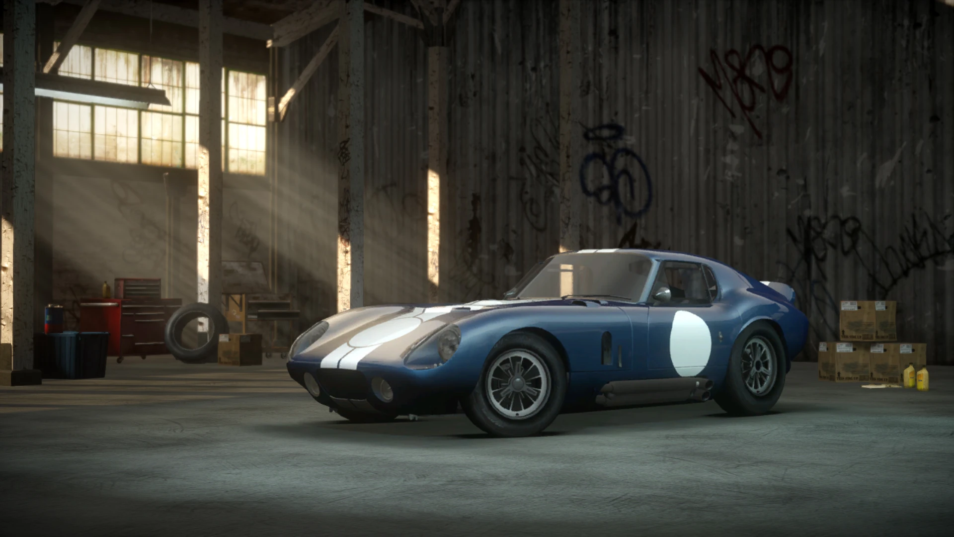 The stock Cobra "Daytona" Coupé is unlocked upon the player achieving a Bronze Medal in all "Winter Blast" events in the Challenge Series.
